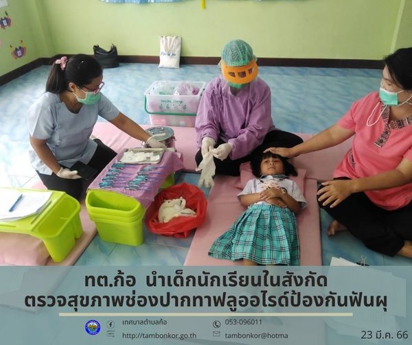 วันที่ 23 มีนาคม 2566 นายอุดม เชียงยศ นายกเทศมนตรีตำบลก้อ มอบหมายให้ครูผู้ดูแลเด็ก เจ้าหน้าที่ผู้เกี่ยวข้อง เด็กนักเรียนและผู้ปกครอง เข้าร่วมการประชุมให้ความรู้เรื่องการดูแลรักษาฟันสำหรับเด็กในศูนย์พัฒนาเด็กเล็กบ้านก้อจัดสรร และนำเด็กนักเรียนในสังกัดตรวจสุขภาพช่องปากเด็กก่อนวัยเรียนและทาฟลูออไรด์วานิชเพื่อป้องกันฟันผุ โดยเจ้าหน้าที่กลุ่มงานทันตกรรม โรงพยาบาลลี้