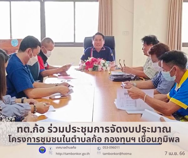 วันที่ 7 เมษายน 2566 นายอุดม เชียงยศ นายกเทศมนตรีตำบลก้อ เข้าร่วม การประชุมการจัดงบประมาณ ประจำปีงบประมาณ พ.ศ.2567 กองทุนพัฒนาไฟฟ้าโรงไฟฟ้าเขื่อนภูมิพล จังหวัดตาก ประเภทโครงการชุมชนในตำบลก้อ ภายใต้แผนงานที่ กกพ.กำหนด โดยนายวิชัย เครือไหม คพรฟ.ตำบลก้อ ร่วมด้วย ผู้นำชุมชนตำบลก้อ แพทย์ประจำตำบลก้อ คณะครูโรงเรียนบ้านก้อจัดสรร และผู้เกี่ยวข้อง เข้าร่วม ณ ห้องประชุมเทศบาลตำบลก้อ
