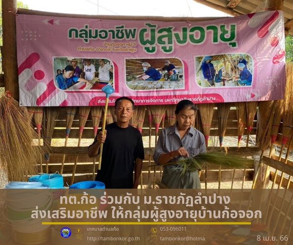 วันที่? 8 เมษายน? 2566 นายอุดม เชียงยศ นายกเทศมนตรีตำบลก้อ ร่วมกับ คณะวิทยาการจัดการ มหาวิทยาลัยราชภัฏลำปาง ลงพื้นที่ เพื่อดำเนินกิจกรรมส่งเสริมอาชีพ ให้กับกลุ่มผู้สูงอายุ บ้านก้อจอก ตำบลก้อ? อำเภอลี้ จังหวัดลำพูน ภายใต้โครงการพัฒนาคุณภาพชีวิตและยกระดับเศรษฐกิจฐานราก พื้นที่อำเภอลี้ ร่วมกับเทศบาลตำบลก้อ อำเภอลี้ จังหวัดลำพูน