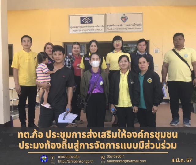 วันที่ 4 มีนาคม 2567 นายอุดม เชียงยศ นายกเทศมนตรีตำบลก้อ มอบหมายให้ นายพิชญะ สุยะมัน รองนายกเทศมนตรีตำบลก้อ ร่วมกับ? องค์กรชุมชนประมงท้องถิ่นตำบลก้อ และคณะกรรมการ? ประชุมการส่งเสริมให้องค์กรชุมชนประมงท้องถิ่น และติดตามการจัดการมีส่วนร่วมของผู้เกี่ยวข้อง และแนวทางดำเนินการ ปัญหาและอุปสรรค เพื่อจัดกิจกรรมเปิดบ่อตกปลา เพื่อสร้างจิตสำนึกในการใช้ประโยชน์จากทรัพยากรสัตว์น้ำและสร้างความเข้มแข็งให้กับสมาชิกในชุมชน