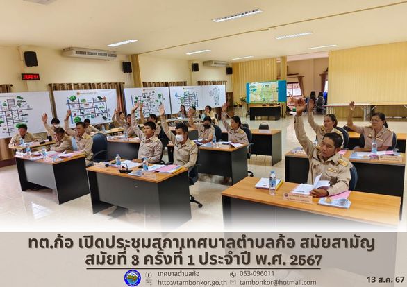 วันที่ 13 สิงหาคม 2567 เวลา 09.00 น. นายอุดม เชียงยศ นายกเทศมนตรีตำบลก้อ เข้าร่วมการประชุมสภาเทศบาลตำบลก้อ สมัยสามัญ สมัยที่ 3 ครั้งที่ 1 ประจำปี พ.ศ. 2567 โดยมี นางสาวเพ็ญนภา ปาสายออ ประธานสภาเปิดประชุม โดยที่ประชุมเสนอร่างเทศบัญญัติงบประมาณรายจ่ายประจำปี พ.ศ. 2568 ต่อสภาเทศบาลตำบลแม่ก้อ ณ ห้องประชุมเทศบาลตำบลก้อ อำเภอลี้ จังหวัดลำพูน