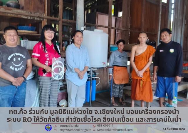วันที่ 14 กันยายน 2568 นายธนัช มูลใจ นายกเทศมนตรีตำบลก้อ มอบหมายให้ นายพิชญะ สุยะมัน รองนายกเทศมนตรีตำบลก้อ ร่วมกับ มูลนิธิแม่ห่วงใย จังหวัดเชียงใหม่ มอบเครื่องกรองน้ำระบบ RO ให้กับ วัดก้อยืน หมู่ที่ 3 ตำบลก้อ อำเภอลี้ จังหวัดลำพูน จุดประสงค์เพื่อ มอบน้ำดื่มที่สะอาด ปลอดภัย และมีประโยชน์ต่อสุขภาพ ให้แก่ผู้ที่มาทำกิจกรรมในวัดและประชาชนทั่วไป หรือ ครอบครัวยากจน ชุมชนแออัด และนักเรียน ซึ่งช่วยป้องกันโรคที่เกิดจากน้ำไม่สะอาด เช่น ท้องร่วง อหิวาตกโรค และช่วยยกระดับคุณภาพชีวิตโดยรวมให้ดีขึ้นทั้งด้านร่างกายและจิตใจ? ประโยชน์ป้องกันโรคและส่งเสริมสุขภาพเครื่องกรองน้ำช่วยกำจัดเชื้อโรค สิ่งปนเปื้อน และสารเคมีในน้ำ ทำให้ผู้ที่ได้รับบริจาคมีน้ำสะอาดปลอดภัยสำหรับดื่มและใช้ ช่วยลดความเสี่ยงการป่วยเป็นโรคที่เกี่ยวกับน้ำ พัฒนาคุณภาพชีวิตครอบครัว ที่เข้าถึงน้ำสะอาด