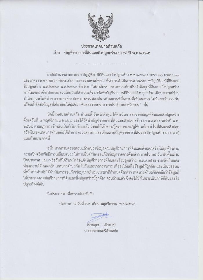 แบบบัญชีรายการที่ดินและสิ่งปลูกสร้าง ภ.ด.ส. 3 ประจำปี พ.ศ.2565