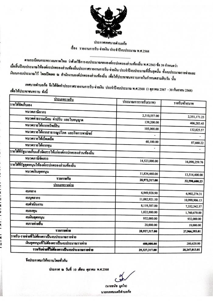 รายงานการรับ-จ่ายเงิน ประจำปีงบประมาณ พ.ศ.2568